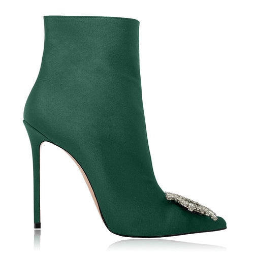 Satin-Stiefelette mit spitzer Zehenpartie, Innenreißverschluss, Zubehör und 120 mm Stilettoabsatz