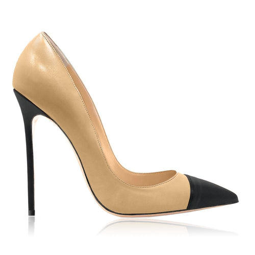 Zweifarbiges Dekolleté mit spitzer Zehenpartie aus Leder 100mm oder 120mm Stilettoabsatz