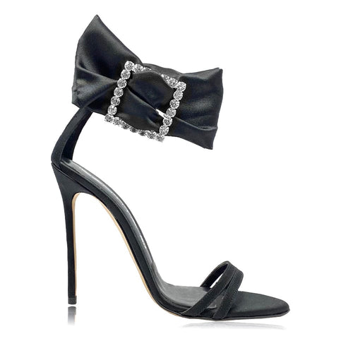 Sandale mit runder Zehenpartie aus Satin mit Riemen und Kristallschnalle, 120mm Stilettoabsatz