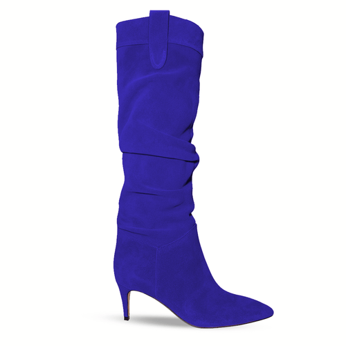 Schlauchstiefel mit spitzer Spitze aus Wildleder mit Falten und 70mm Absatz
