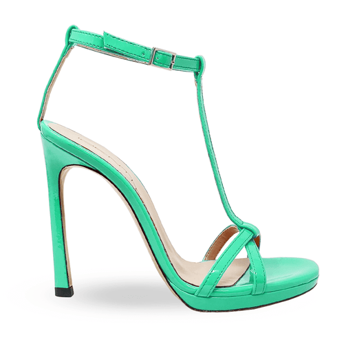 Runde Zehensandale mit Lacklederband, verstellbarem Knöchelriemen, 11 cm hohem Absatz und 1 cm Plateau