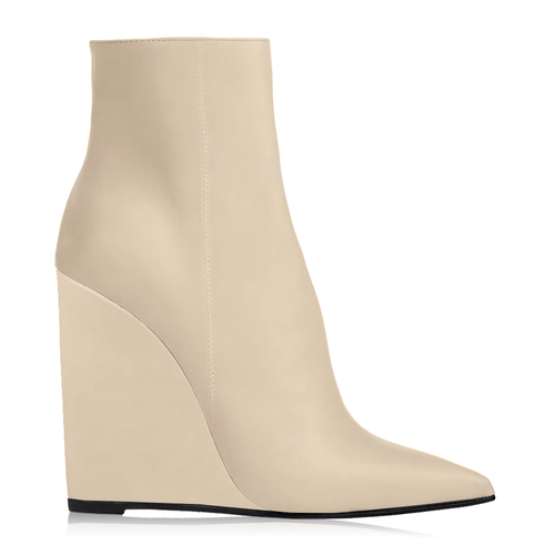 Stiefelette aus echtem Leder mit spitzer Zehenpartie, Innenreißverschluss und 100-mm-Keilabsatz