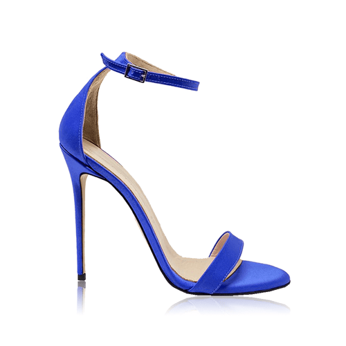 Sandalia de punta redonda con banda de raso con correa ajustable en el tobillo, tacón de aguja de 100 mm o 120 mm