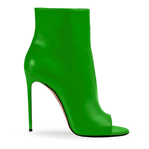 Botín punta abierta en cuero genuino con cremallera interna, tacón de aguja de 100 mm o 120 mm