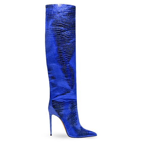 Botín tubular de punta en piel laminada efecto serpiente con tacón de aguja de 100 mm o 120 mm