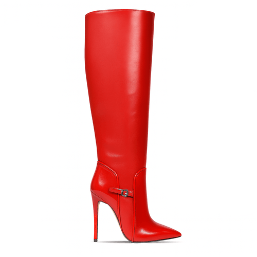 Bota tubular por debajo de la rodilla en piel auténtica con tacón de aguja de 80mm, 100mm o 120mm