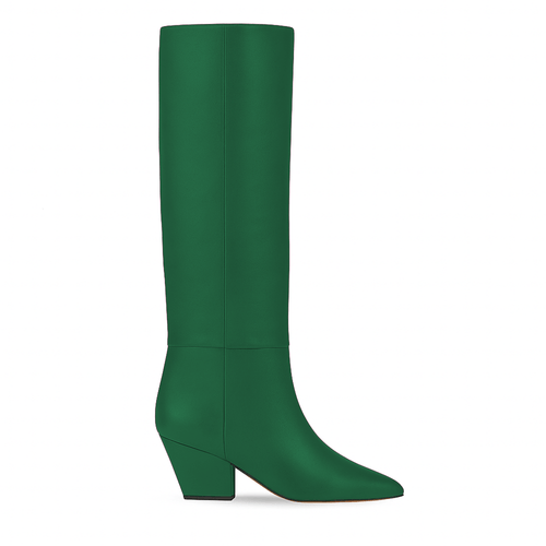 Bota tubular por debajo de la rodilla en piel auténtica con tacón ancho de 60mm