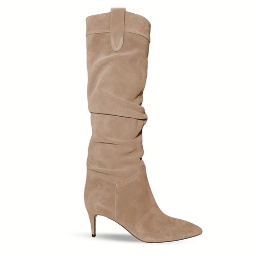 Bota tubular de punta afilada en ante con pliegues y tacón de 70mm