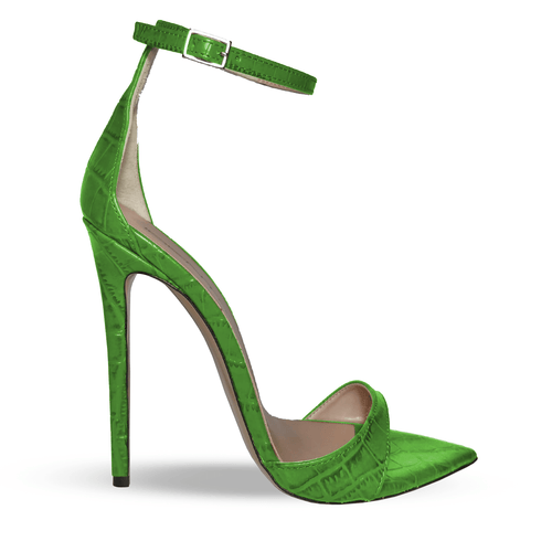 Sandalia de punta en estampado de cocodrilo con cinturilla ajustable al tobillo, tacón de aguja de 100mm o 120mm