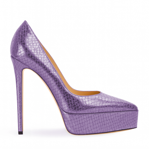 Escarpin pointu avec tige laminée effet serpent, plateforme de 3,5 cm et talon de 13 cm