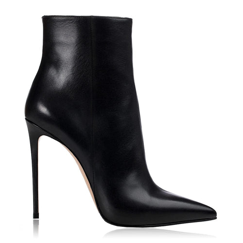 Botte à bout pointu en cuir véritable avec zip interne et talon aiguille de 100 mm ou 120 mm
