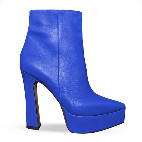 Bottine à bout pointu en cuir véritable avec fermeture éclair intérieure, plateau de 3,5 cm et talon de 13 cm