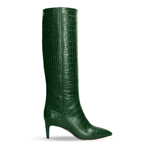 Stivale tubolare a punta sfilata in stampa coccodrillo con tacco medio a spillo da 60mm