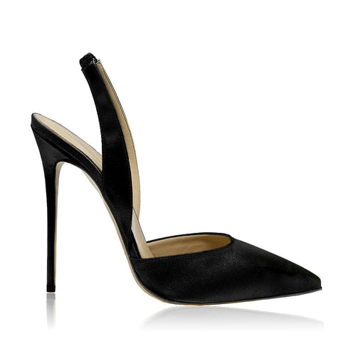 Dècolletè slingback a punta sfilata in raso tacco a spillo da 80mm, 100mm o 120mm