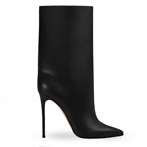 Stivale tubolare sotto al polpaccio in vera pelle con tacco a spillo da 100mm e 120mm
