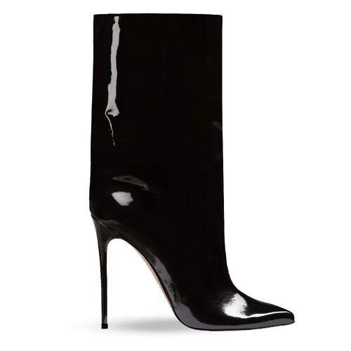 Stivale tubolare a punta sfilata sotto il polpaccio in vernice con tacco a spillo da 100mm o 120mm