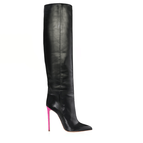 Stivale tubolare sotto al ginocchio in vera pelle con tacco fucsia a spillo da 100mm o 120mm