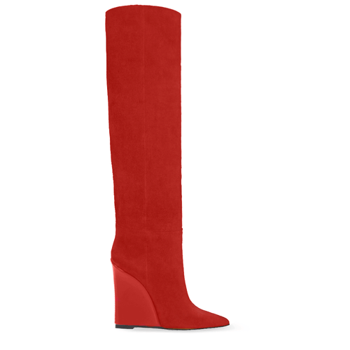 Stivale tubolare sotto al ginocchio in camoscio con zeppa verniciata da 100mm
