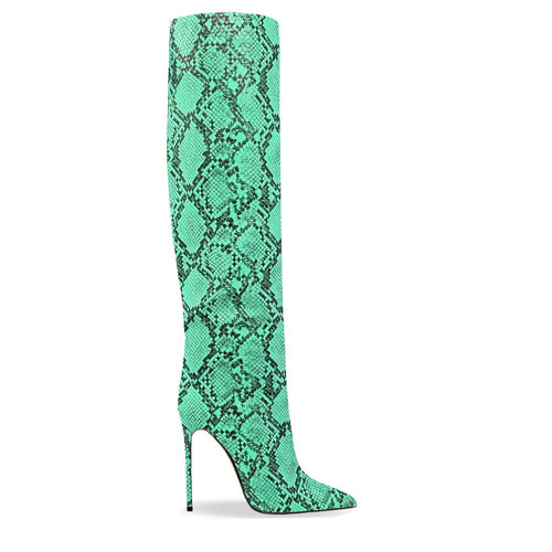Stivale tubolare a punta sfilata in stampa rettile con tacco a spillo da 100mm o 120mm