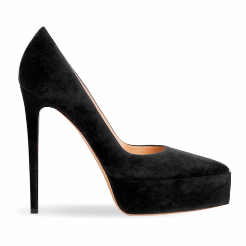 Décolleté a punta con tomaia in camoscio, plateau da 3.5cm e tacco da 13cm