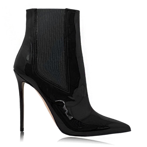 Stivaletto chelsea a punta sfilata in pelle verniciata con tacco a spillo da 100mm o 120mm