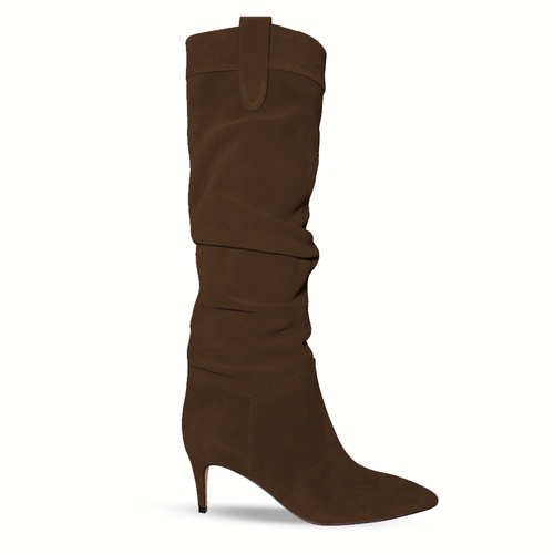 Stivale tubolare a punta sfilata in camoscio con pieghe e tacco da 70mm