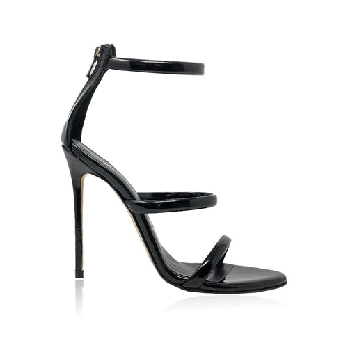Sandalo a tre fasce con punta tonda zip posteriore e tacco a spillo 80mm, 100mm o 120mm