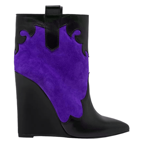 Stivaletto texano tubolare a punta sfilata in vero camoscio con zeppa