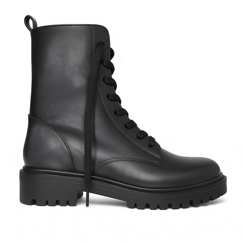 Stivaletto in vera pelle con punta tonda e fondo in gomma carrarmato con zip interna