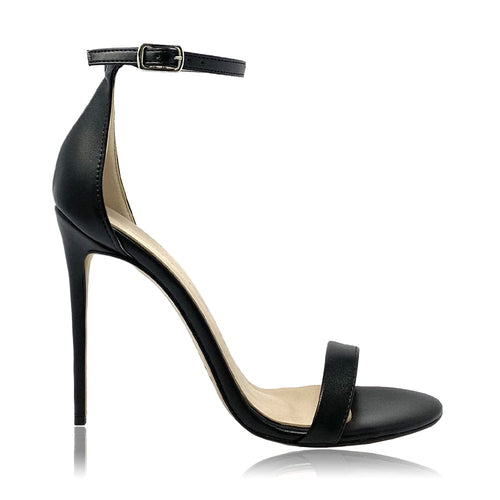 Round toe sandal with leather band with adjustable ankle strap, 100mm or 120mm stiletto heel