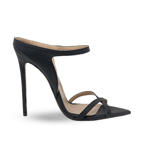 Pointed sandal with front bands and ankle strap. 100mm or 120mm stiletto heel