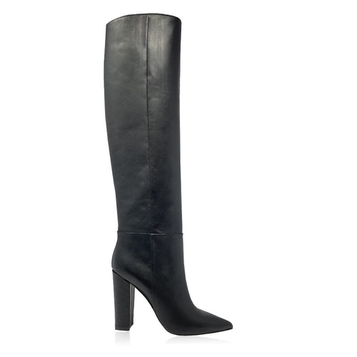 Tubular boot below the knee in genuine leather with 90mm wide heel