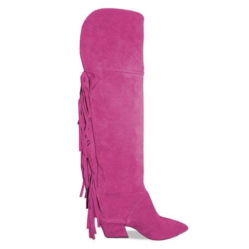 Tubular boot with pointed toe in suede with fringes and medium 60mm heel