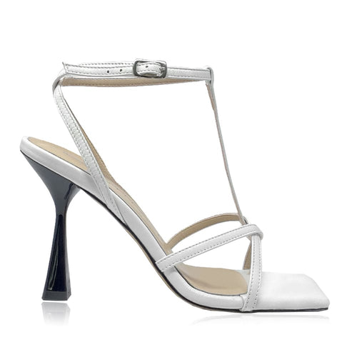 T-Bar thong sandal with square toe in leather with strap, 100mm heel