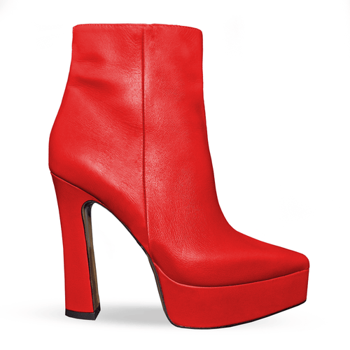 Pointed stiletto ankle boot in genuine leather with internal zipper, 3.5cm platform, and 13cm heel