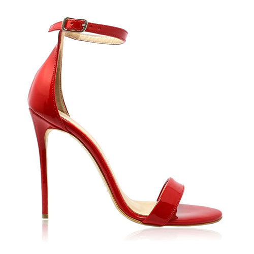 Round toe sandal with patent leather band with adjustable ankle strap, 100mm or 120mm stiletto heel