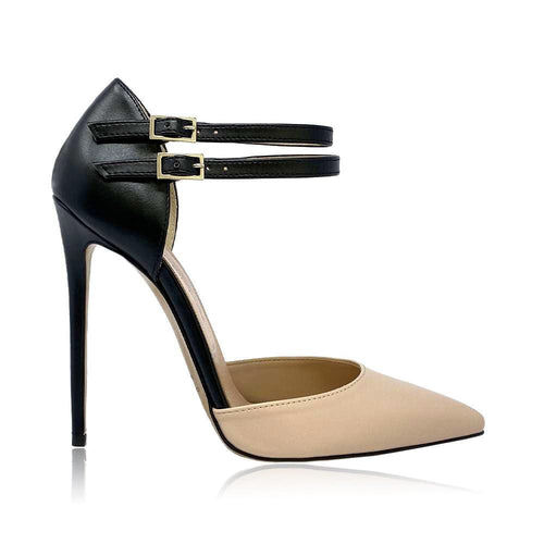 Two-tone dècolletè toe and heel with double strap, in leather 100mm or 120mm stiletto heel